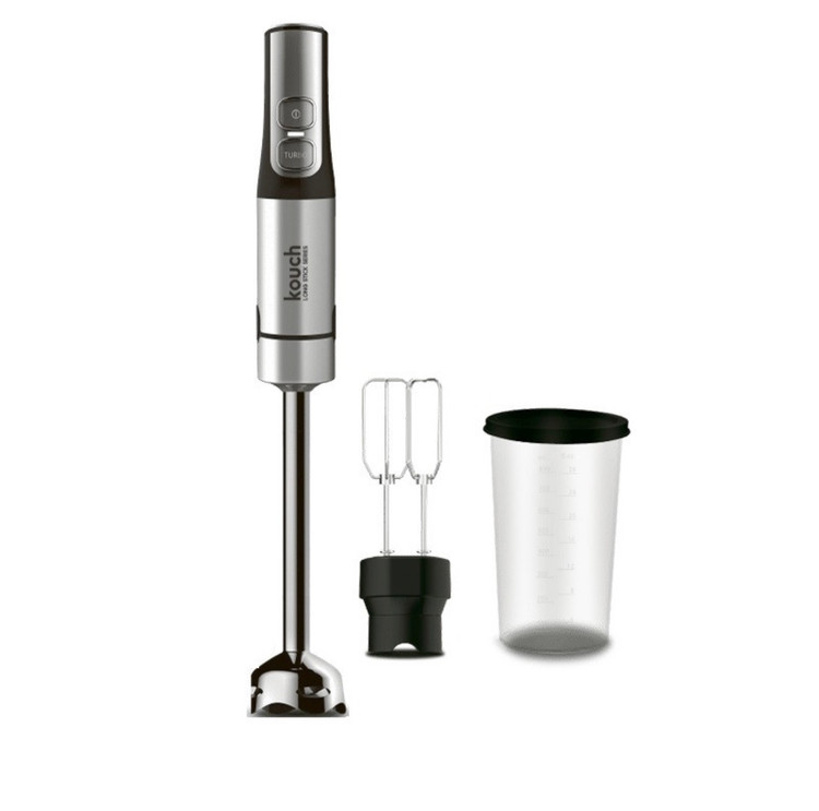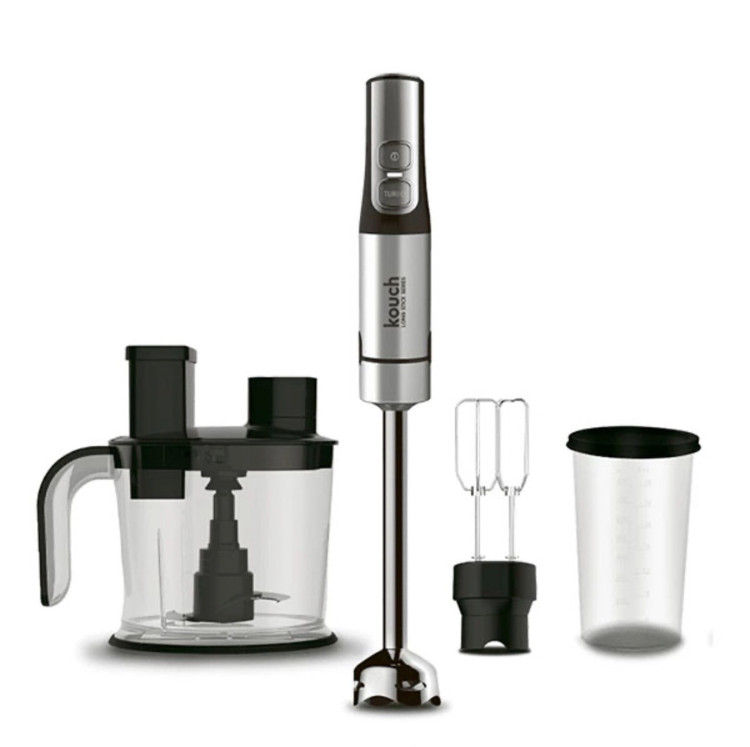 پیمانه شفاف درجه بندی شده به همراه درپوش, خردکن مناسب سبزیجات، پیاز، گوشت و …, همزن دوقلو بالونی از جنس استیل ضد زنگ برای هم زدن سفیده تخم مرغ، خامه یا مخلوط کردن خمیر پن کیک