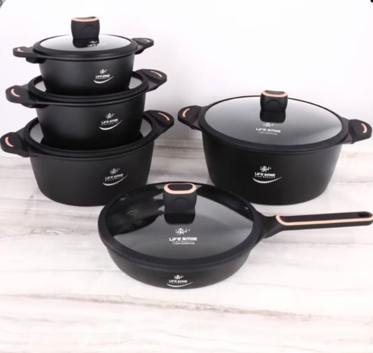 1 عدد قابلمه بزرگ سایز 32 1 عدد قابلمه سایز 28 1 عدد قابلمه سایز 24 1 عدد قابلمه کوچک سایز 20 1 عدد تابه سایز 28 تک دسته همراه سرهای مخصوص شیشه ای