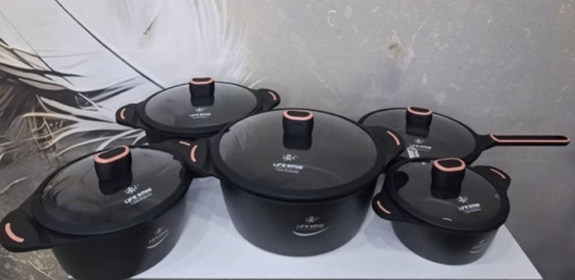 ۳ عدد قابلمه + ۱ ماهتیابه دو دسته + ۱ ماهیتابه دسته دار