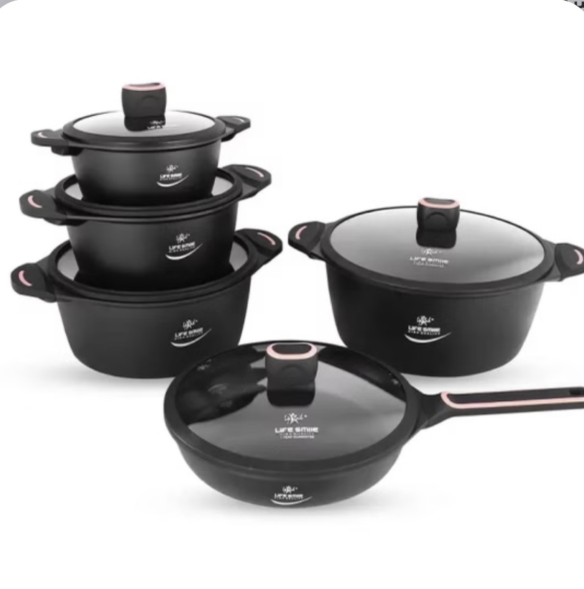 1 عدد قابلمه بزرگ سایز 32 1 عدد قابلمه سایز 28 1 عدد قابلمه سایز 24 1 عدد قابلمه کوچک سایز 20 1 عدد تابه سایز 28 تک دسته همراه سرهای مخصوص شیشه ای