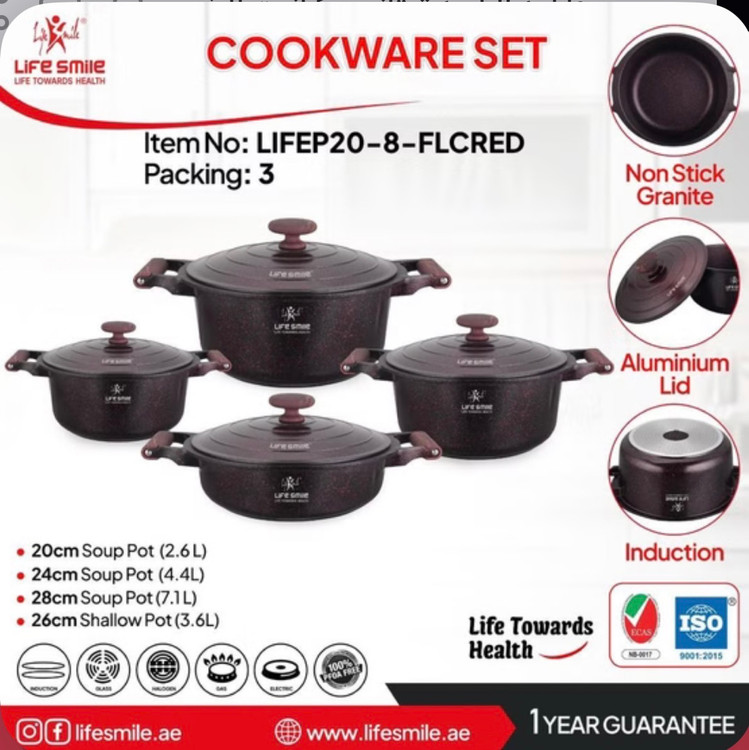 سرویس قابلمه 8پارچه تیتانیوم گرانیت لایف اسمایل مدلLIFEP20SF_8 - زرشکی