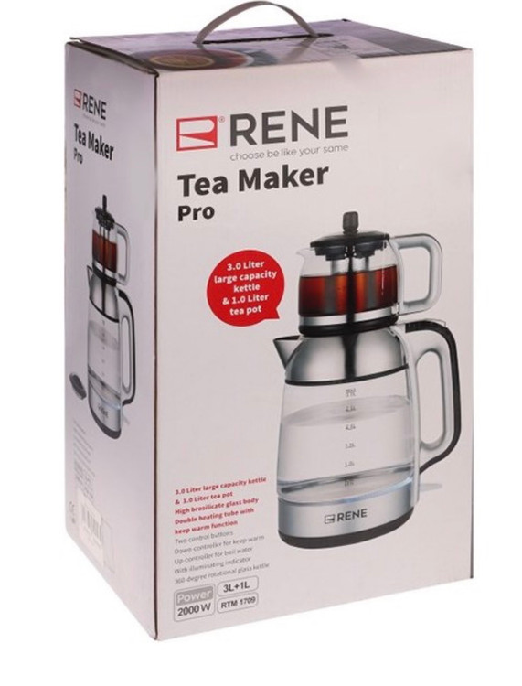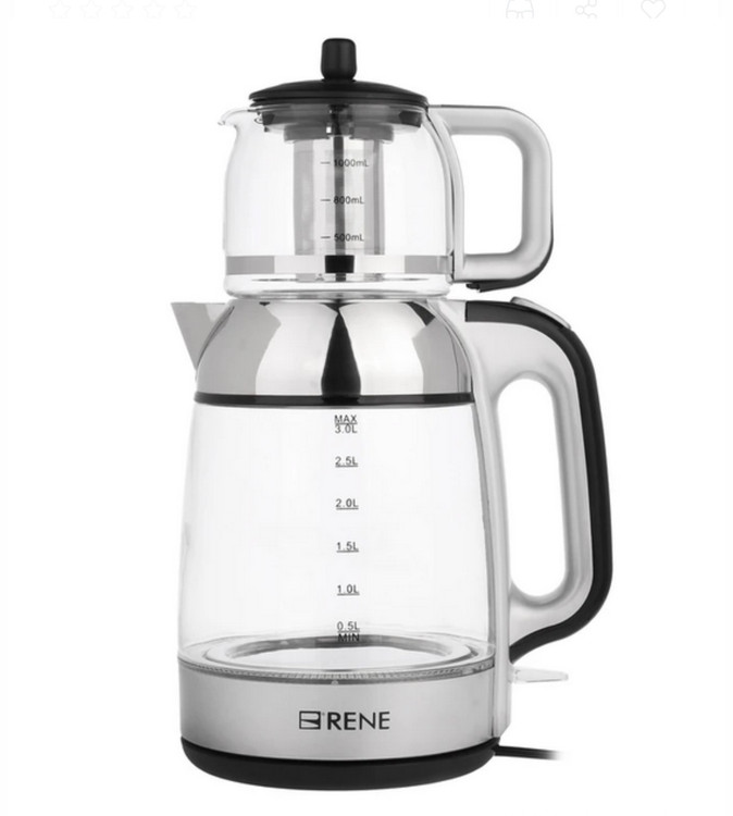 چای ساز رنه مدل RTM1709 ظرفیت ۳ لیتر با کتری شیشه‌ای