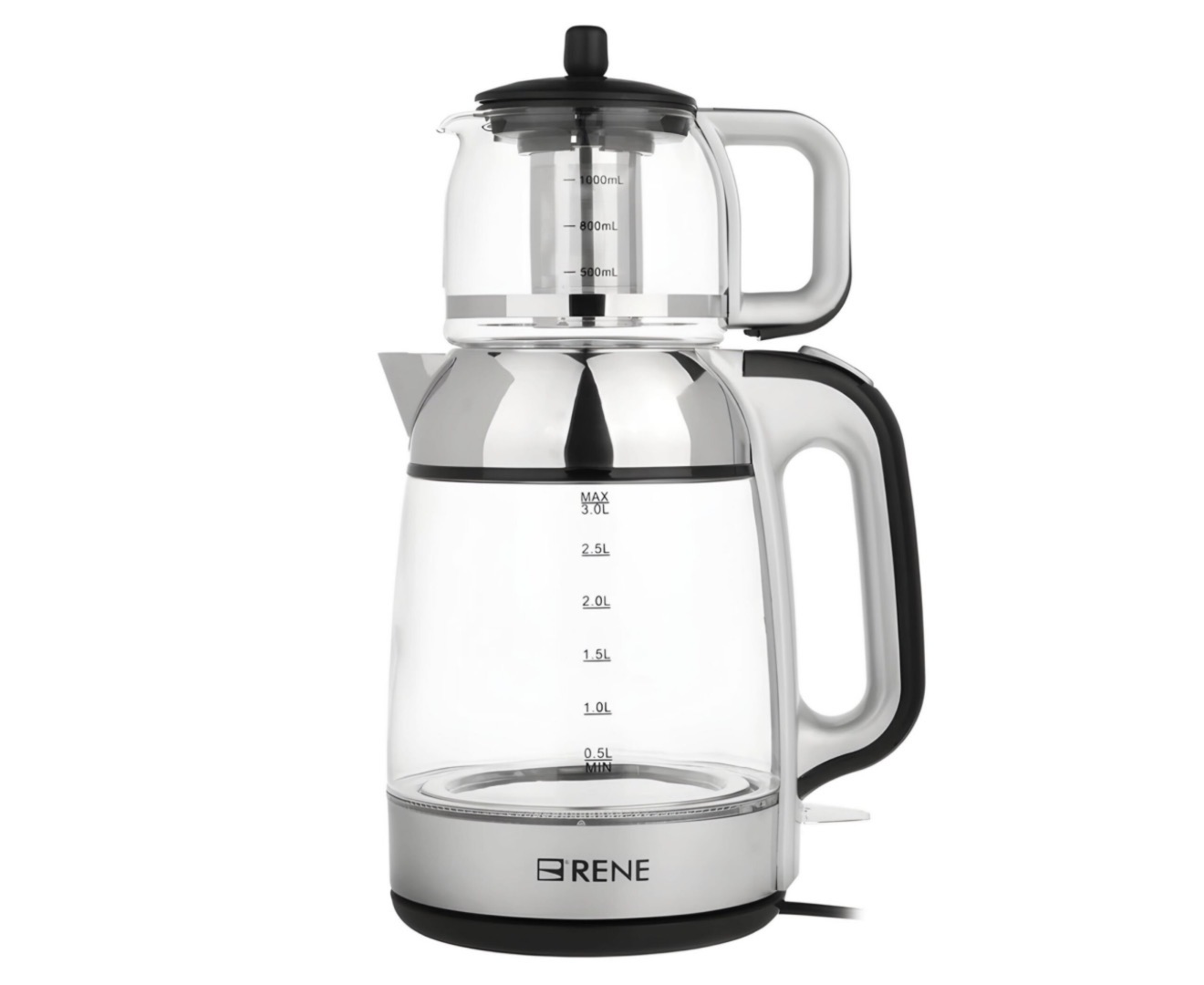 چای ساز رنه مدل RTM1709 ظرفیت ۳ لیتر با کتری شیشه‌ای