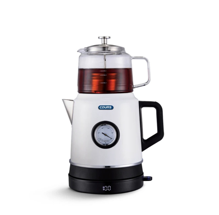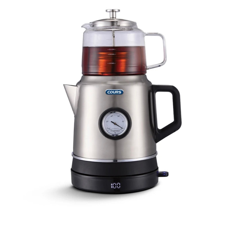 قوری شیشه ای 1 لیتری همراه با صافی آسانسوری استیل