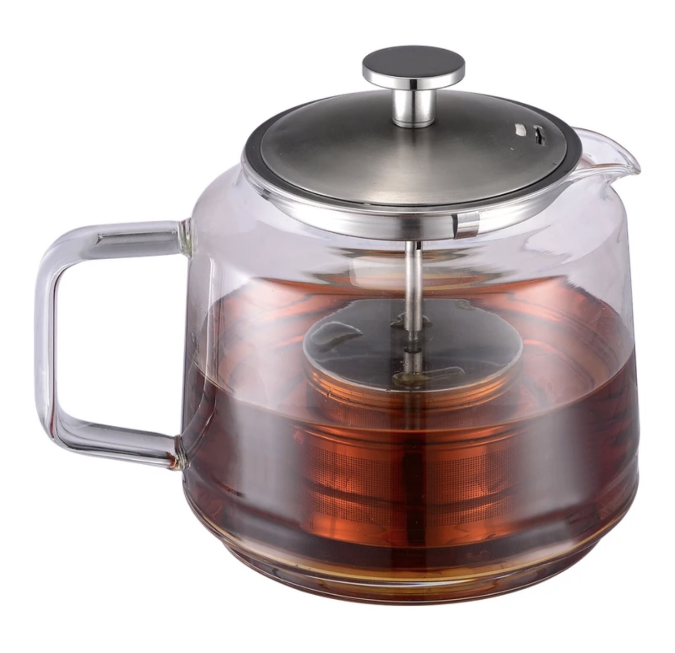 قوری شیشه ای 1 لیتری همراه با صافی آسانسوری استیل